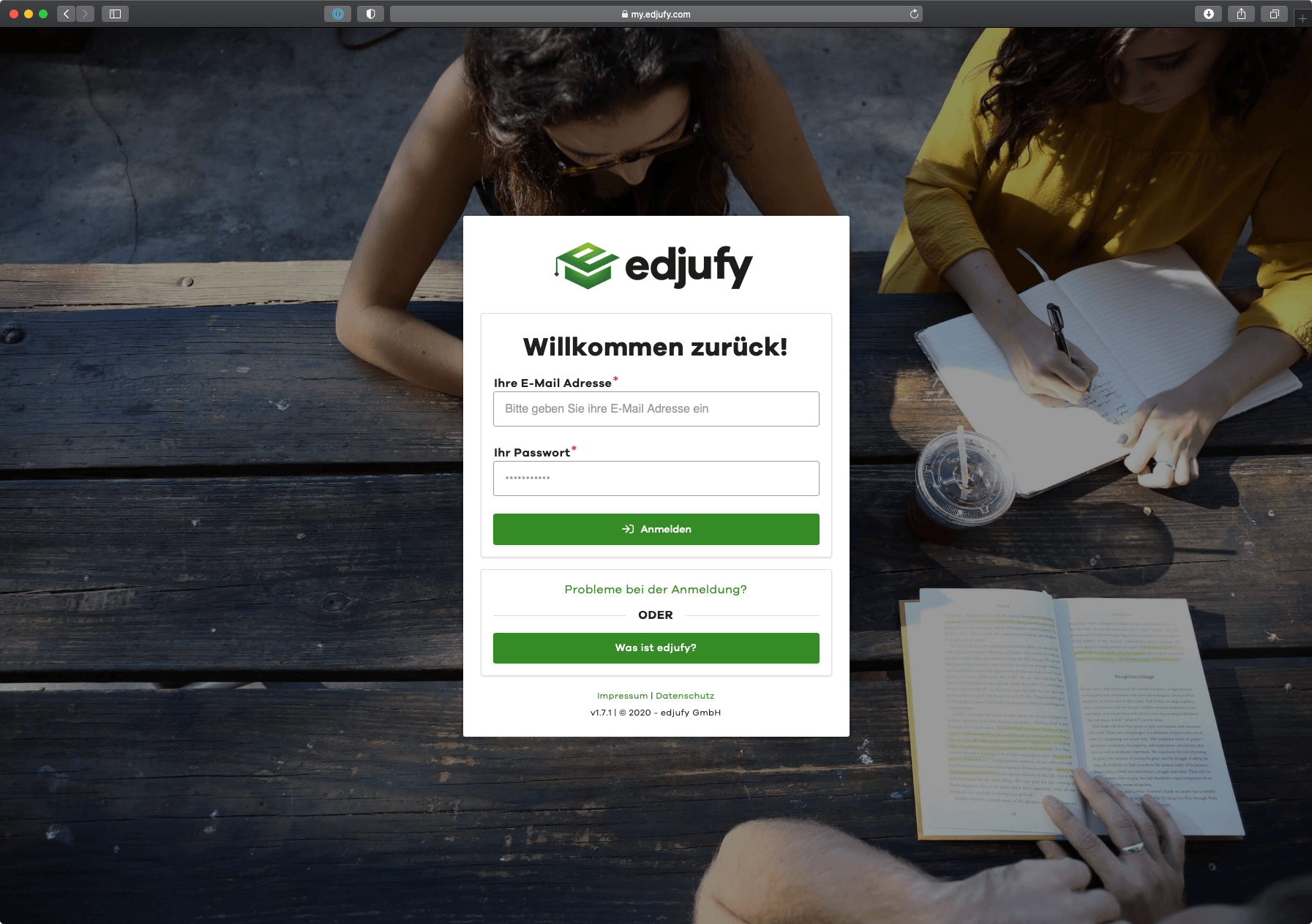 Ab diesem Moment können Sie sich in edjufy anmelden.