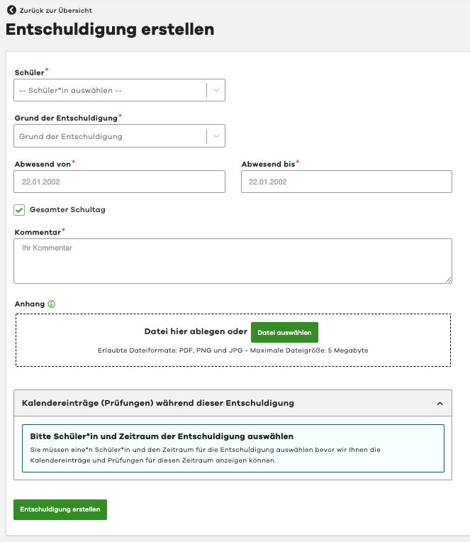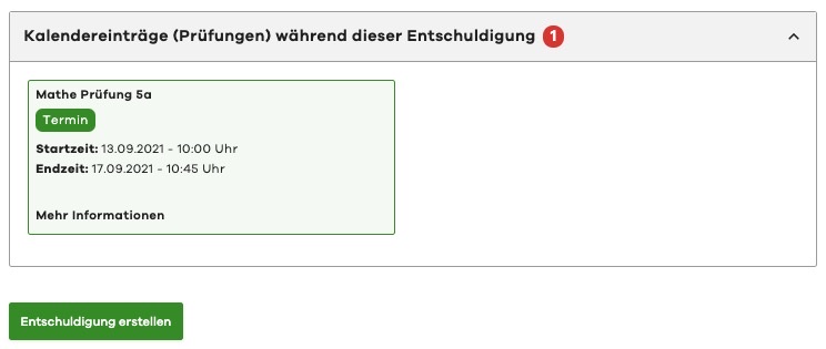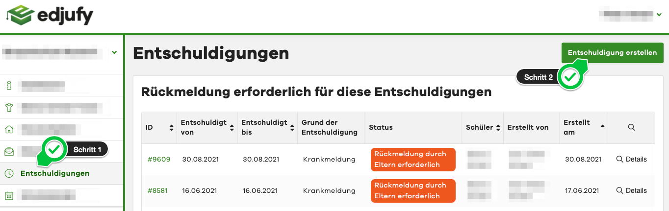 Once the excuse has been submitted, it still needs to be confirmed by the school. You will be informed about the processing status in the Status field.