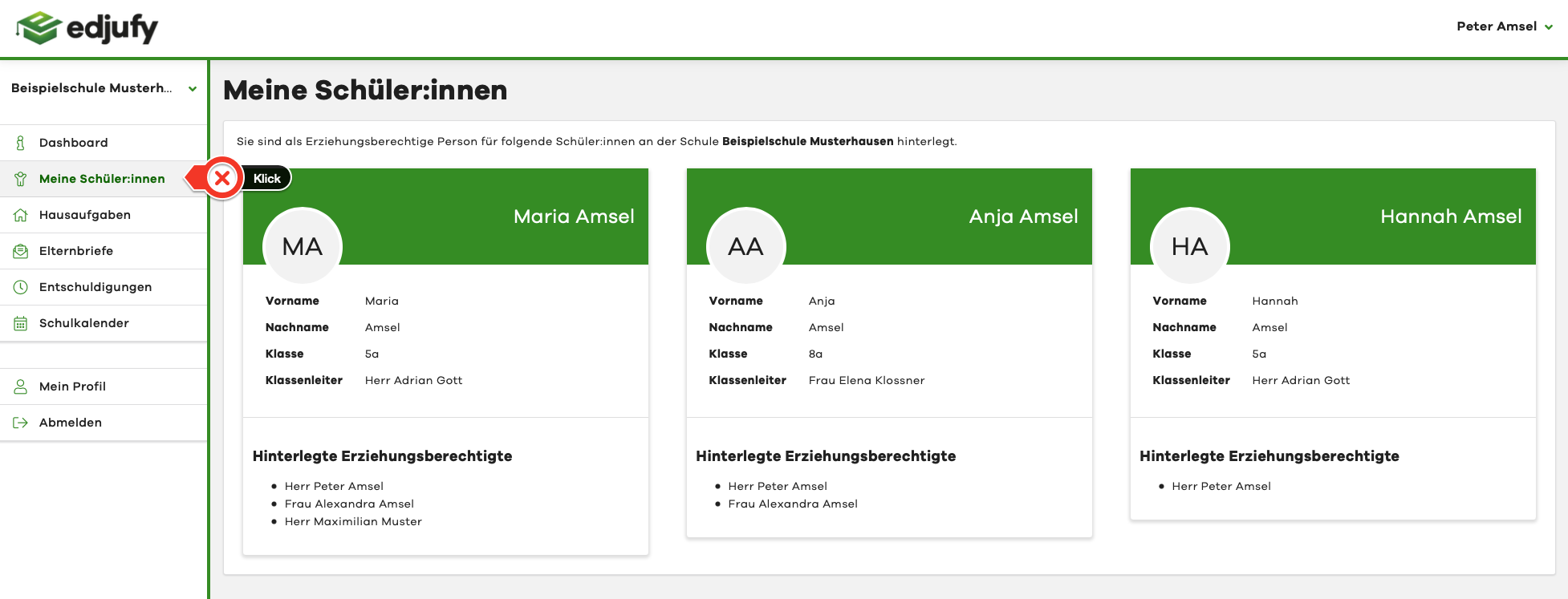 For each pupil assigned to your account, you can see all other people who are also registered as legal guardians.